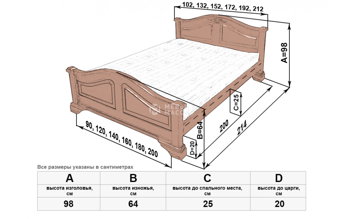 Королевская кровать Европа мод 1 изготовлена из натурального древесного массива. Модель имеет прочную конструкцию и благородный вид. Изделие, которое можно купить по выгодной цене в нашем интернет-магазине, отличается сплошными симметричными волнообразными спинками, переходящими в устойчивые ножки. Осуществляется доставка на дом %rs_city_po% и %rs_po_oblasti%.| Размер | Цена | |