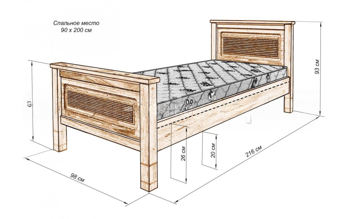 Кровать Фермер из экологически чистой натуральной древесины. изделие представлено в четырёх вариантах исполнения из древесины на выбор: сосна, берёза, бук или дуб. широкий выбор вариантов покраски позволяет органично вписаться в любой интерьер. отличается износостойкостью, прочностью, лаконичным дизайном. приобретайте изделие по выгодной цене с доставкой на дом в интернет-магазине «мебель массив». Осуществляется доставка на дом %rs_city_po% и %rs_po_oblasti%.| Размер | Цена | |