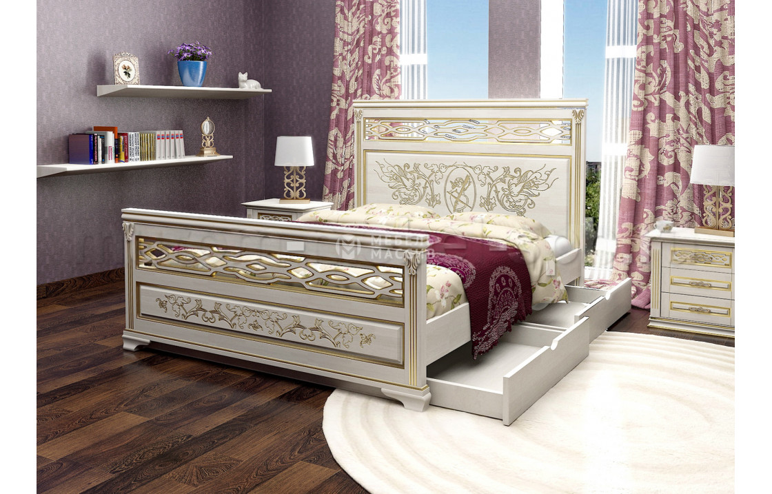 Линария-2 – двуспальная кровать, главной отличительной чертой которой является выдающийся дизайн. Внешний вид изделия действительно может поразить воображение сложным рисунком и изящными вставками с резными узорами. Достичь такого уровня позволяет материал изготовления – натуральная цельная древесина, идеально поддающаяся подобной обработке. Также удачно смотрится сочетание кремового и золотистого цветов. Тем не менее при совершении заказа на эту чудо-кровать можно поменять цветовое решение в пользу других вариантов из каталога. Доставка %rs_city_po% и %rs_po_oblasti%.| Размер | Цена | |