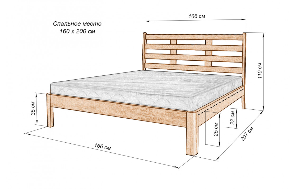 Кровать Морфей имеет минималистичный дизайн: высокое реечное изголовье, отсутствующее изножье и высокие устойчивые ножки. Изделие, которое можно купить по демократичной цене в нашем интернет-магазине, изготовлено из экологически чистого древесного массива и покрыто защитным лаком. Осуществляется доставка на дом %rs_city_po% и %rs_po_oblasti%.| Размер | Цена | |