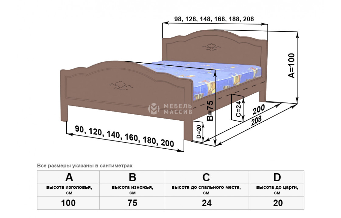 Кровать Сонька имеет выдержанные в едином стиле волнообразные спинки, украшенные аккуратными узорами, и длинные устойчивые ножки. Изделие, которое можно купить по демократичной цене в нашем интернет-магазине, изготовлено из экологически чистого древесного массива и покрыто защитным лаком. Осуществляется доставка на дом %rs_city_po% и %rs_po_oblasti%.| Размер | Цена | |