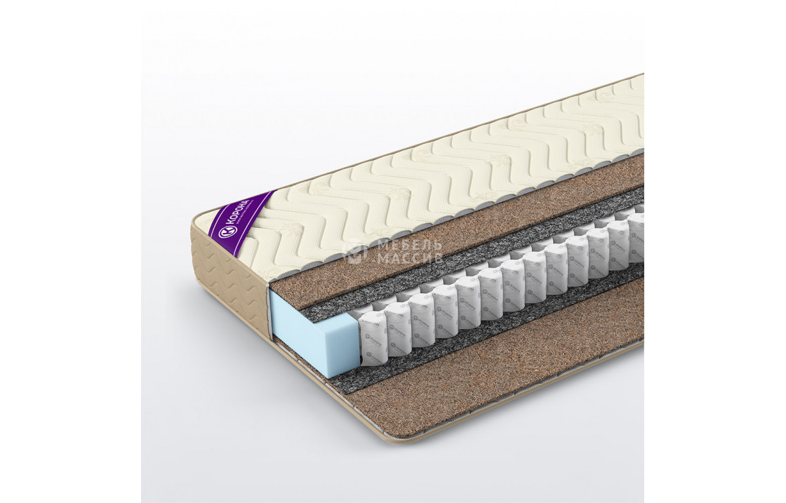 - Кокосовая койра 10 мм ? Кокос - переплетенные волокна кокосового ореха, растительного происхождения. Исключительные свойства кокоса в прочности, упругости и гигиеничности. Материал придает жесткости матрасу. Обладает отличной вентилируемостью, устойчив к любой влажности и перепадам температуры, гипоаллергенный и долговечный.