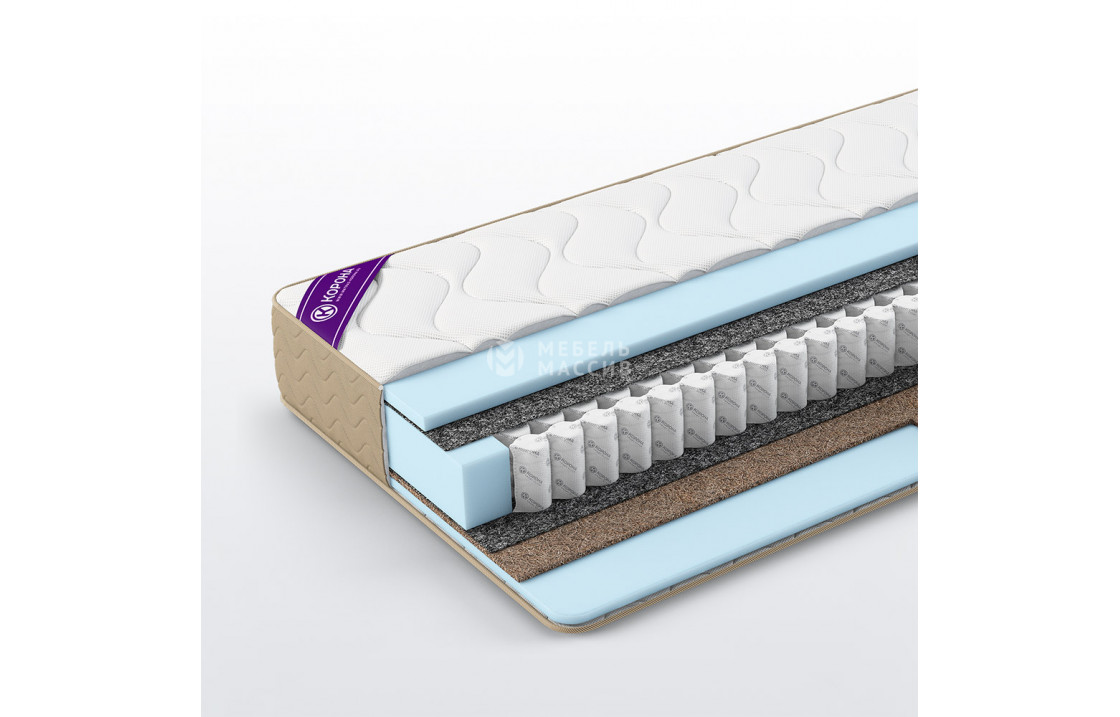 - бикокос 10 мм ? Кокос - переплетенные волокна кокосового ореха, растительного происхождения. Исключительные свойства кокоса в прочности, упругости и гигиеничности. Материал придает жесткости матрасу. Обладает отличной вентилируемостью, устойчив к любой влажности и перепадам температуры, гипоаллергенный и долговечный.