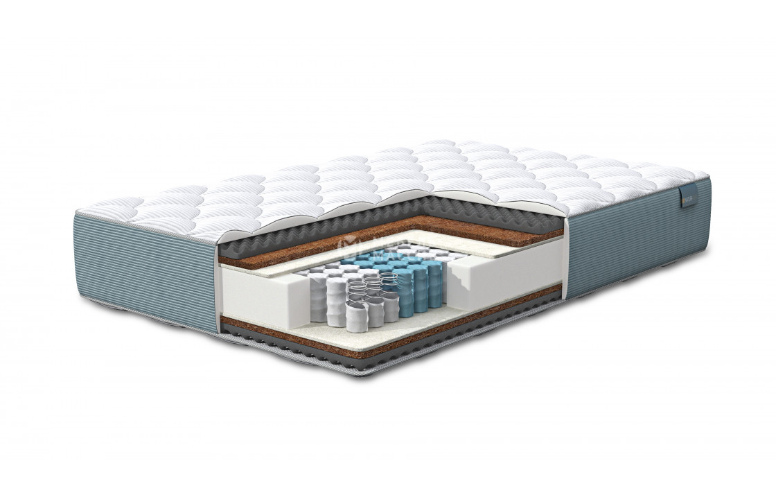 Блок независимых пружин - состоит из множества пружин имеющих форму бочонка, небольшого диаметра 5-6 см. Пружины изготовлены из проволоки. Они находятся в отдельных чехлах из очень прочного материала и скреплены термоспайкой, что позволяет идеально распределять нагрузку. Отдельная пружина реагирует на вес человека, вне зависимости от других, и матрас, повторяя контуры тела, позволяет оставаться позвоночнику ровным.