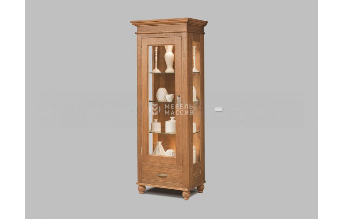 Винтаж 3 – сервант с одной створкой, изготовленный из натурального массива. Он занимает немного места и имеет отличные эксплуатационные характеристики. Внутреннее пространство модели поделено между четырьмя полками за застекленной дверцей, по бокам также есть стеклянные вставки. Полочки превосходно подойдут для размещения сувениров, коллекций, посуды и прочих предметов, которые хочется выставить напоказ. Дополнительно сервант оборудован закрытым ящиком на направляющих. Дизайн изделия больше относится к классической стилистике, но и в современных интерьерах мебель будет смотреться неплохо. Доставка %rs_city_po% и %rs_po_oblasti%.| Размер | Цена | |