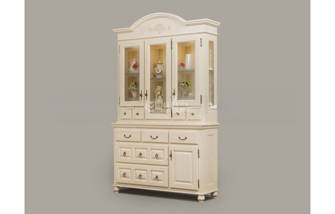 Трехстворчатый сервант Ретро 26 - это функциональный предмет меблировки, который подойдет для установки как в обеденной зоне, так и в гостиной. Для его изготовления был задействован массив сосны, зарекомендовавший себя как надежный материал, способный выдерживать длительные нагрузки, без потери привлекательного внешнего вида. Модель имеет стеклянную часть с полками, а также, комодную - с множеством выдвижных ящиков разного размера и нишей за распашной дверцей. Верхнюю часть изделия дополняет фигурная надстройка, а сама конструкция устойчиво стоит на округлых ножках. Выбрать подходящую фурнитуру и нужный оттенок древесины можно в карточке товара. Доставка %rs_city_po% и %rs_po_oblasti%.| Размер | Цена | |