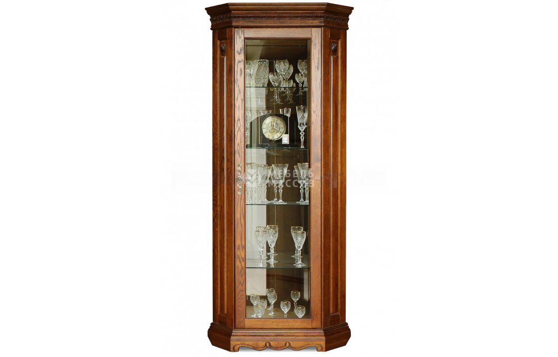 Сервант Милано со скошенными углами – шкаф для хранения праздничной посуды и прочих декоративных предметов. Благодаря форме корпуса он будет эргономично смотреться даже в маленьких помещениях. Внутри него находятся стеклянные полки, а также зеркало на стенке, подчеркивающее красоту содержимого и зрительно расширяющее пространство комнаты. Створка практически полностью застеклена, рамка исполнена из дерева, как и весь остальной корпус. Древесина отлично выносит нагрузки и прекрасно выглядит в любом цвете, который можно выбрать из каталога.| Размер | Цена | |
