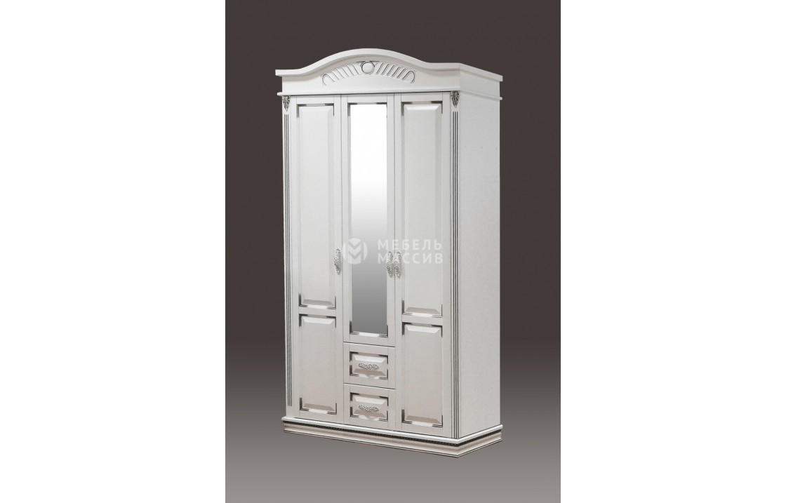 Шкаф Оливия Люкс из натурального древесного массива имеет три основных отделения для хранения, вертикальное зеркало и пару компактных ящиков для небольших аксессуаров. Отличительной чертой изделия, которое можно купить по лучшей цене в нашем интернет-магазине, является изысканный гнутый багет.| Размер | Цена | |