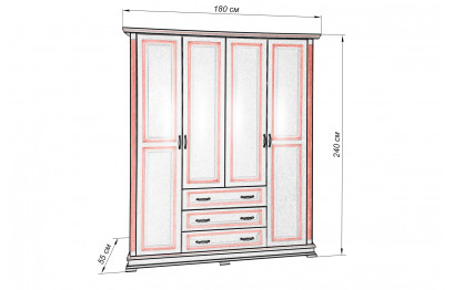 Шкаф четырехстворчатый со встроеннным комодом (розовая патина) из серии "Кардинал"