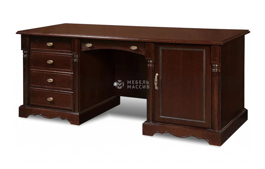 Письменный стол Валео - изделие для размещения в рабочей зоне кабинета или в комнате ребёнка, начавшего посещение школы. Модель имеет огромный функционал, так как обладает высокой посадкой, массивными боковыми стенками, широкой столешницей и обилием выдвижных ящиков и полочек за распашной дверкой для хранения нужного материала. Все подвижные конструкции объединены в удобные тумбы. Изделие позволит комфортно разместиться любому человеку, за прочность отвечает современная фурнитура и материал изготовления в виде сосны. Фасад стола сдержанно украшен резными элементами. Приобрести модель можно в различных цветовых вариантах корпуса, замене подвергаются и ручки. Доставка %rs_city_po% и %rs_po_oblasti%.| Размер | Цена | |