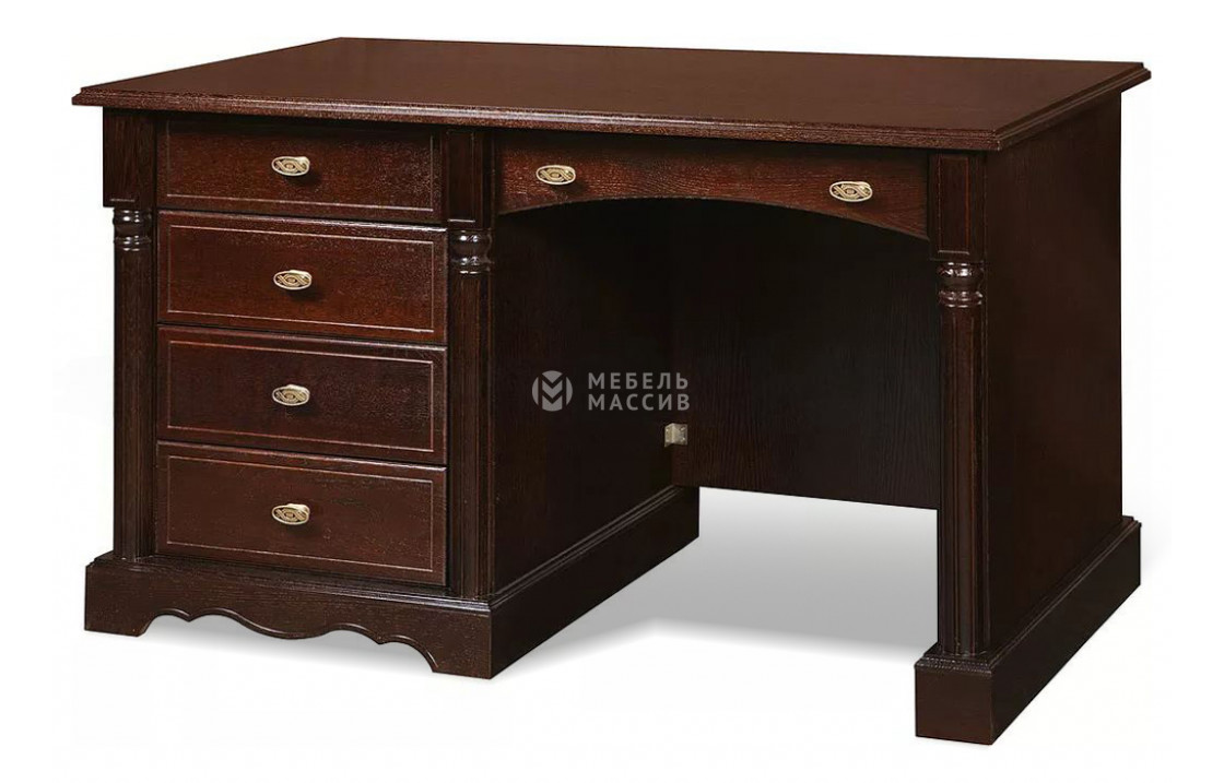 Валео - письменный стол высокого качества изготовления, произведённый из натурального массива сосны. Данная модель универсальна, поскольку ее можно разместить и в рабочем кабинете, и в комнате у школьника. Основными особенностями модели являются широкая столешница, за которой удобно работать. Имеются четыре выдвижных ящика на направляющих, объединённых в боковую тумбу и один большой выдвижной ящик под столешницей для хранения канцелярии и документов. Устойчивость столу придают массивные боковые стенки с плавно переходящими ножками. Доступна мебель в различных цветовых решениях и с иной фурнитурой. Доставка %rs_city_po% и %rs_po_oblasti%.| Размер | Цена | |